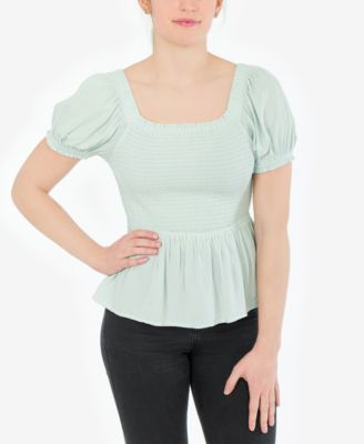 Show a little shoulder in this adorable mint shoulder top designed with puff sleeves and a ruffled peplum hem. While wearing mint gives tenderness to cotton, coolness blends well with the designs it.
